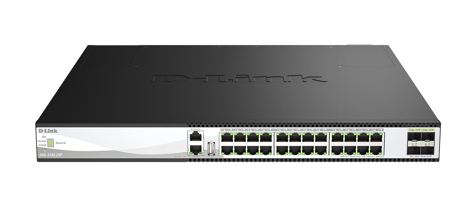 24 порта коммутатора DXS-3130-28P поддерживают стандарты IEEE 802.3af PoE, IEEE 802.3at PoE и IEEE 802.3bt/UPoE. Каждый порт PoE подает питание мощностью до 60 Вт при общем бюджете коммутатора 790 Вт (1440 Вт при использовании двух источников питания), что позволяет пользователям подключать к DXS-3130-28P устройства, совместимые с данными стандартами. Это позволяет размещать оборудование в труднодоступных местах вне зависимости от расположения электрических розеток и минимизировать прокладку кабеля. Кроме того, DXS-3130-28P поддерживает технологии Perpetual PoE и Fast PoE. Технология Perpetual PoE сохраняет подачу питания в линию при программной перезагрузке («warm reboot»). Технология Fast PoE обеспечивает подачу питания в линию после перезагрузки по питанию («cold reboot») до полной загрузки OC коммутатора.