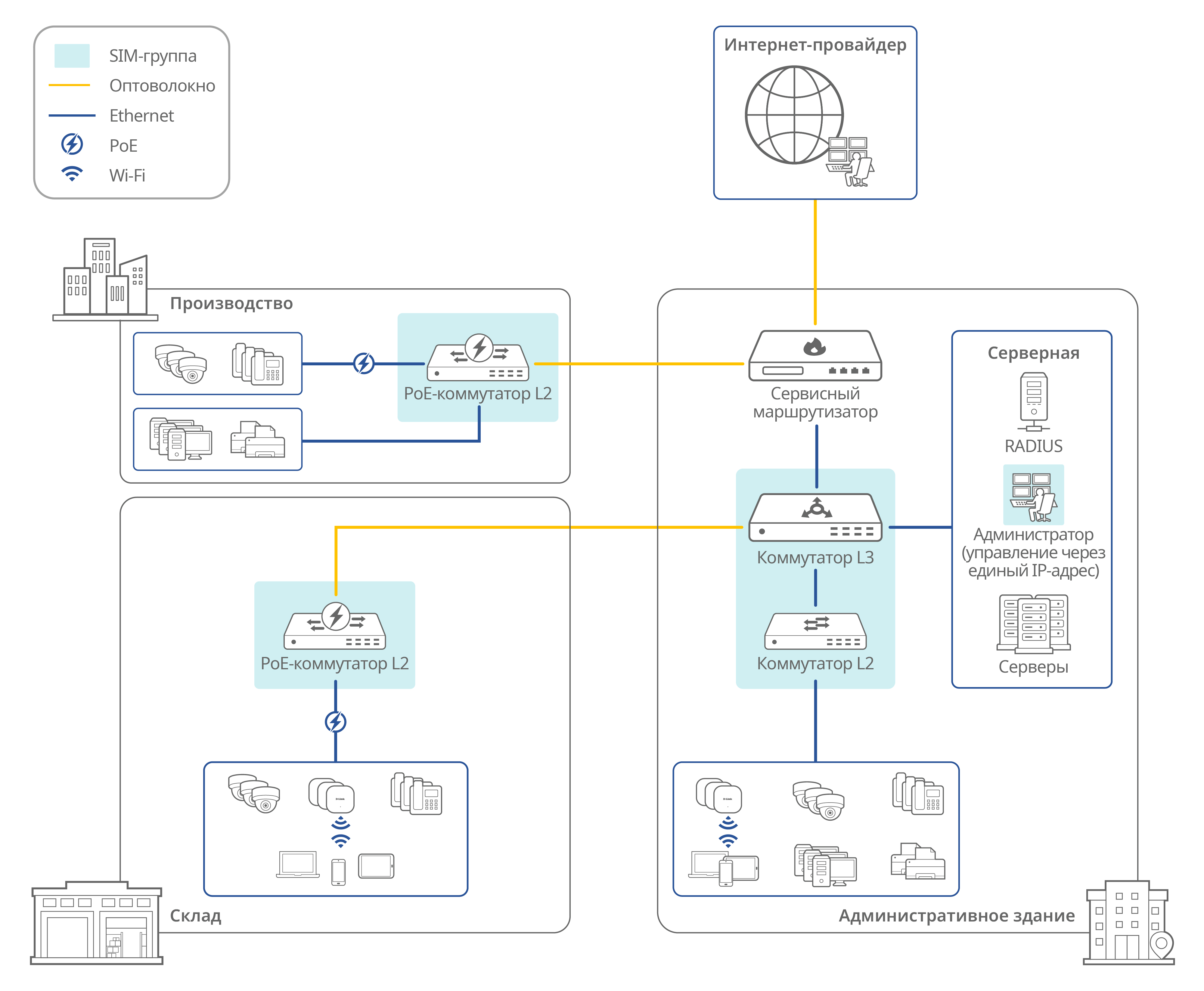 Для соединения коммутаторов не требуются специальные кабели или модули. Устройства SIM-группы могут быть подключены друг к другу через промежуточные устройства, не поддерживающие технологию SIM.