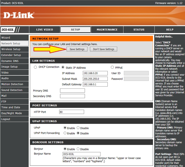 Шаг 4: В меню слева выберите Network Setup (Настройка сети) и в разделе LAN Settings установите переключатель в положение Static IP Address (Статический IP-адрес).
