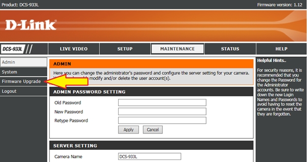 Шаг 4: Выберите слева в меню Firmware Upgrade (Обновление прошивки).