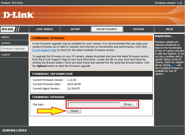 Шаг 5: Нажмите кнопку Обзор и в открывшемся окне выберите файл с прошивкой. Далее нажмите кнопку Upload (Загрузить).