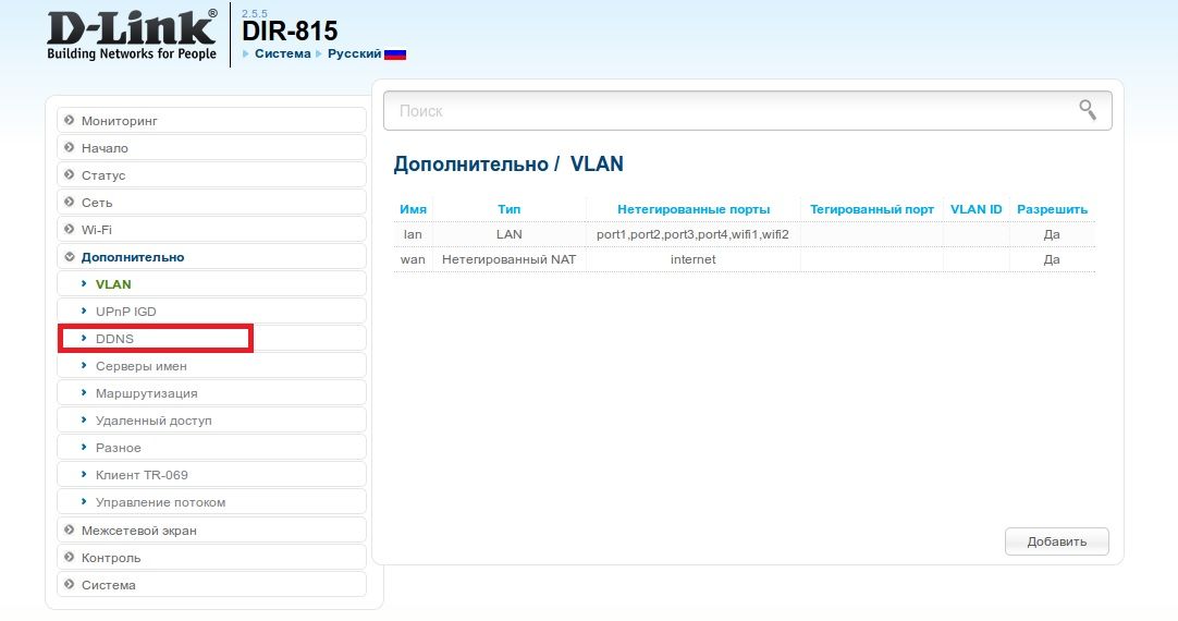 1. В основном меню слева в разделе Дополнительно выберите DDNS.