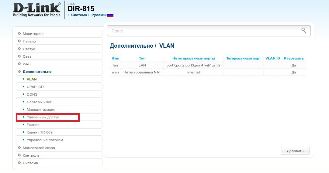 Для удаленного доступа к устройству необходимо наличие «белого» (публичного) адреса на WAN-интерфейсе. Данная услуга предоставляется провайдером.