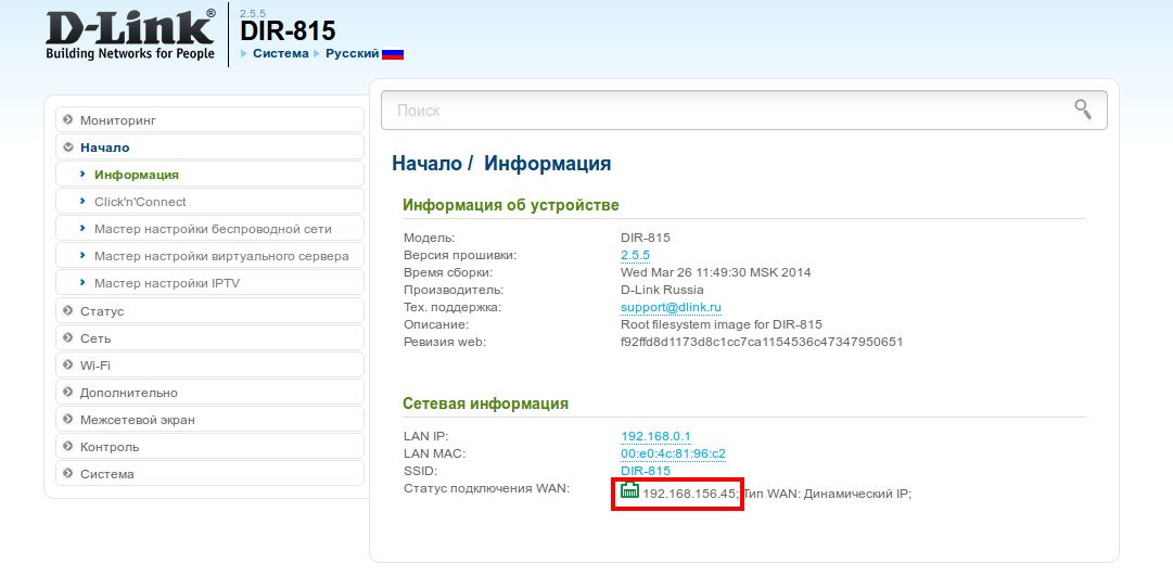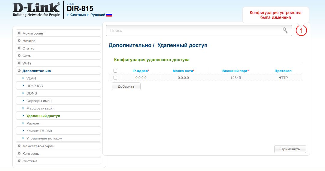 Для удаленного доступа к устройству из внешней сети введите в адресной строке браузера на удаленном устройстве WAN-адрес маршрутизатора с указанием порта. Этот адрес можно найти на главной странице Web-интерфейса (раздел Начало).