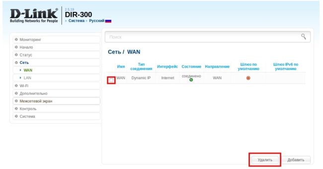 2. На вкладке WAN установите флажок напротив каждого созданного соединения и нажмите кнопку Удалить в нижней части страницы.