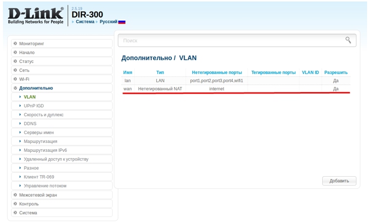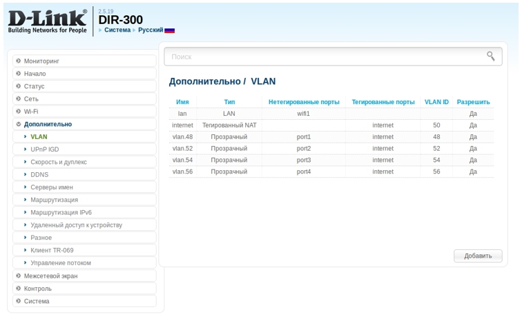 11. На странице VLAN  нажмите кнопку Добавить. Укажите следующие параметры: