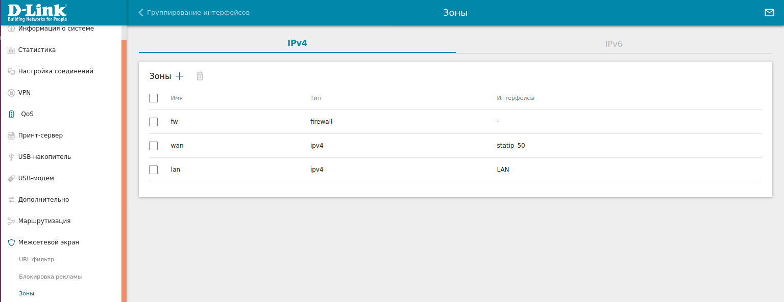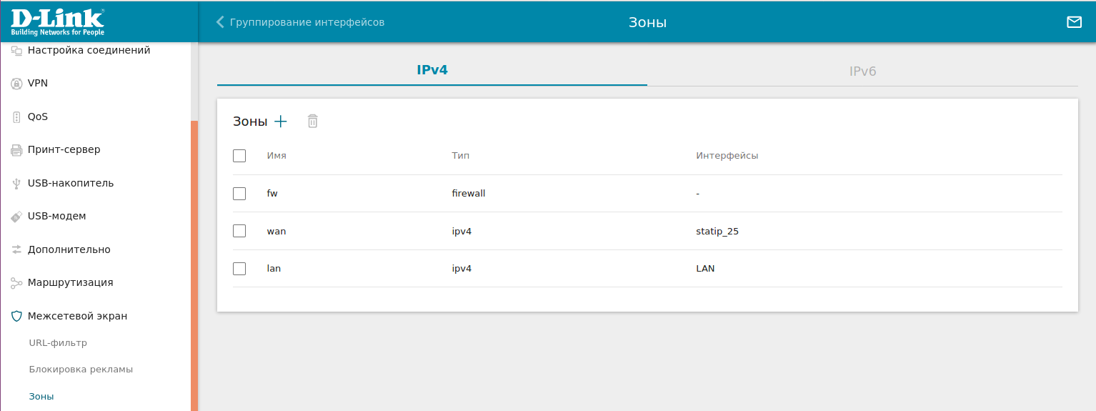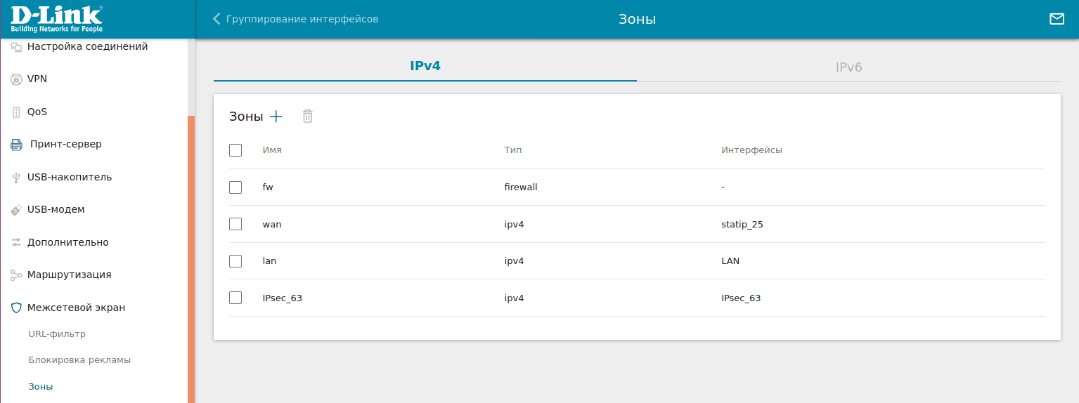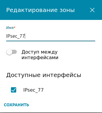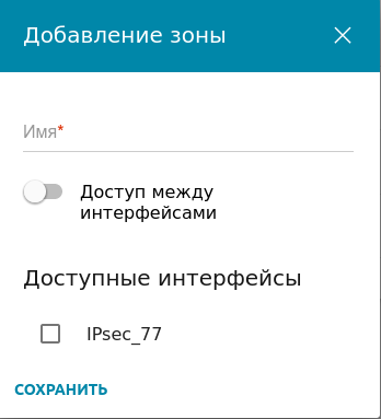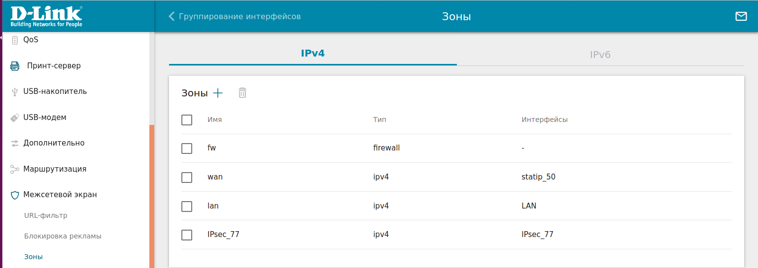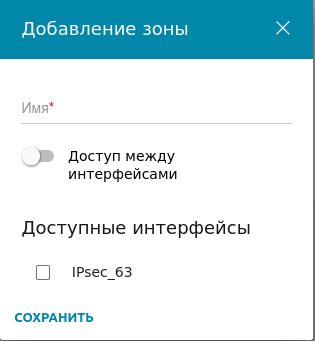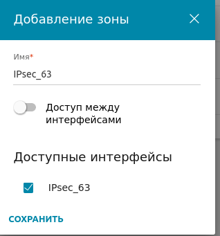 Проверить добавленную зону для IPsec можно в разделе Межсетевой экран, далее — страница Зоны.