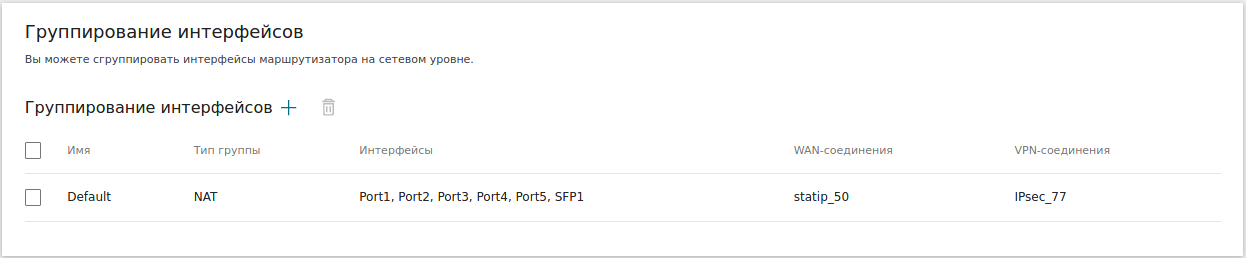 Проверить добавленный IPsec-туннель можно в разделе Группирование интерфейсов.