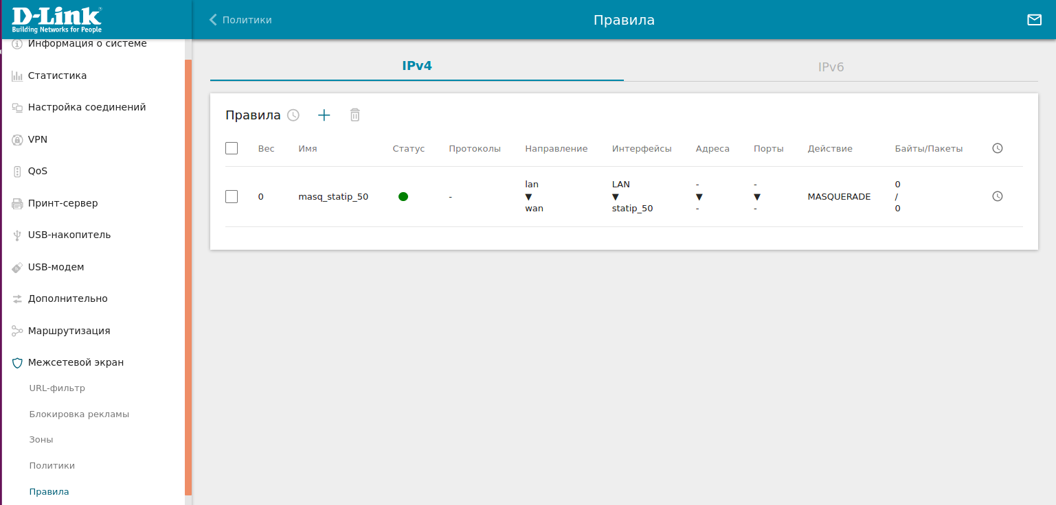 Во вкладке IPv4 добавьте новую политику, нажав на «+».