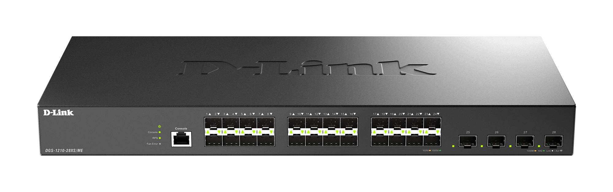 Коммутатор DGS-1210-28XS/ME является идеальным решением для применения в сетях Metro Ethernet. Данный коммутатор оснащен 24 портами 100/1000Base-X для подключения по витой паре, а также 4 портами 10GBase-X SFP+, применяемыми для организации подключения к высокоскоростной магистрали. Защита от статического электричества 6 кВ обеспечивает устойчивость медных портов к наведенному напряжению, а полный набор функций безопасности и аутентификации защищает сеть от внутренних и внешних угроз. DGS-1210-28XS/ME поддерживает Auto Voice VLAN, обеспечивая максимальный приоритет для голосового трафика.