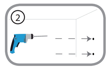 Шаг 2: В зависимости от материала, из которого сделана стена или потолок, используйте подходящие инструменты, чтобы просверлить два отверстия глубиной 25 мм сверлом 6 мм в размеченном месте. Затем вставьте пластмассовые анкеры для удержания винтов.