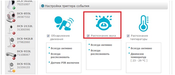 Question: Как настроить функцию обнаружения звука на камере DCS-850L, используя сервис mydlink?
