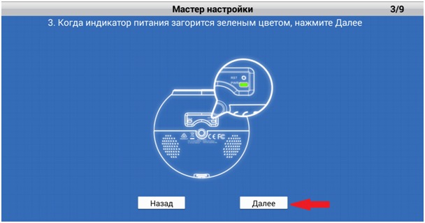 Шаг 7: Убедитесь, что индикатор питания устройства горит зеленым светом. Коснитесь значка Далее.