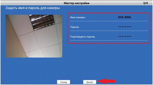 Шаг 9: Задайте новое имя и пароль для камеры. Подтвердите пароль.