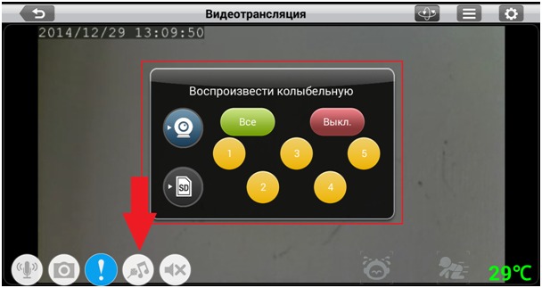 Шаг 2: Коснитесь значка камеры, с которой должна воспроизводиться колыбельная.
