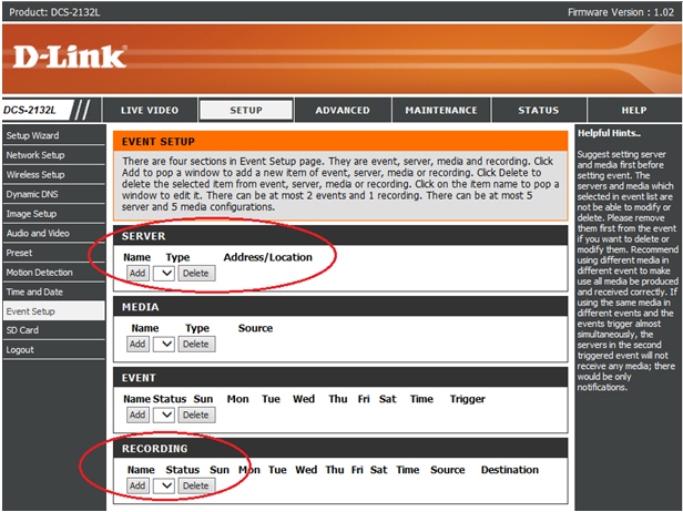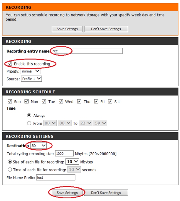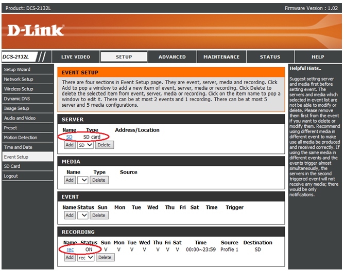 Вопрос: Как настроить непрерывную запись видео на сетевое хранилище (samba сервер) или SD карту с камеры DCS-2132L?