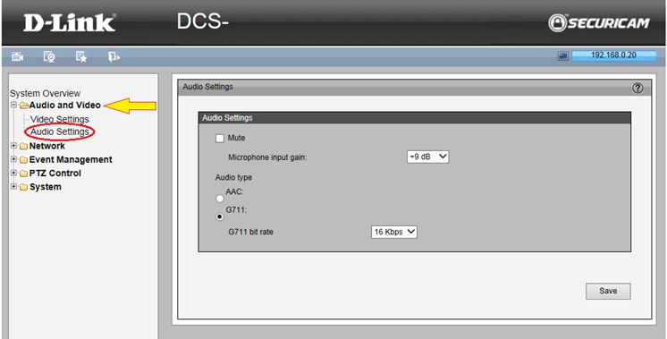 Вопрос: Как выполнить настройки аудио (микрофон) на камере DCS-3010?