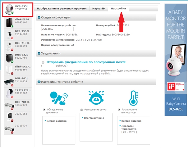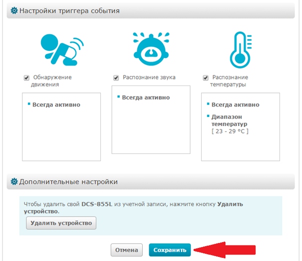 Вопрос: Как настроить функцию обнаружения движения на камере DCS-855L, используя сервис mydlink?