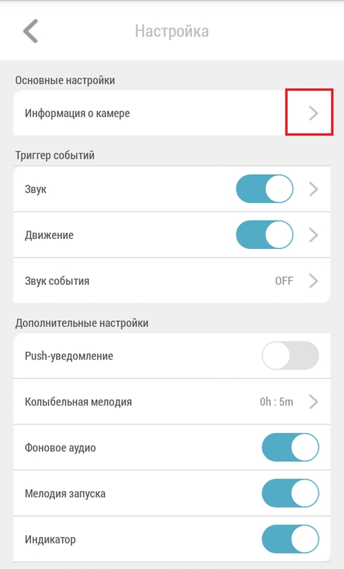 Шаг 4: Коснитесь стрелочки в поле Информация о камере, чтобы открыть раздел настроек.