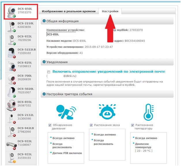 Вопрос: Как настроить функцию обнаружения движения на камере DCS-850L, используя сервис mydlink?