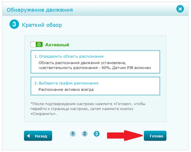 Шаг 7: Нажмите Готово, чтобы подтвердить настройки обнаружения движения.