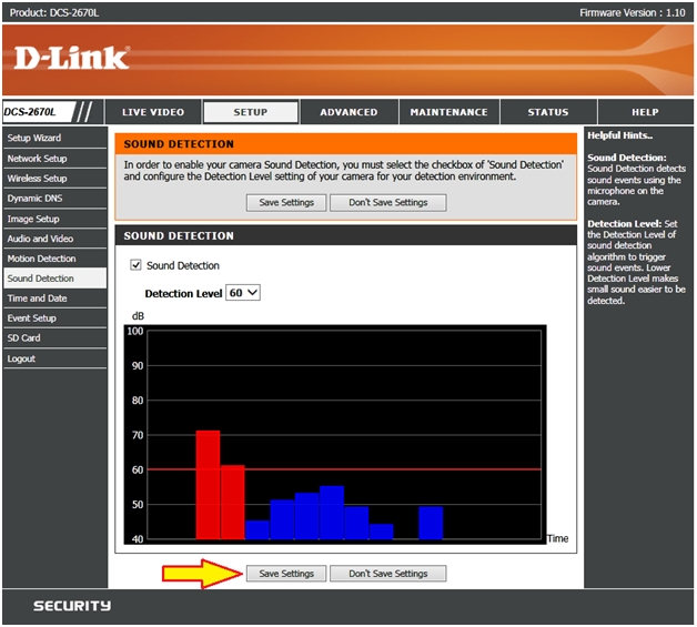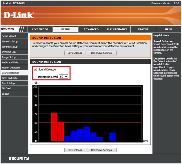 Шаг 5: Поставьте флажок в поле Sound Detection, чтобы включить программное обнаружение звука.