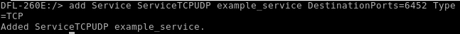 add Service ServiceTCPUDP example_service DestinationPorts=6452 Type=TCP