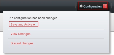 Для того, чтобы выполненные настройки вступили в силу, необходимо выполнить их активацию. Для этого в веб интерфейсе выберите Configuration → Save and Activate (Рис. 10) и дождитесь применения настроек.