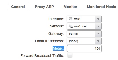 Cоздаем маршрут wan1 wan1_net с метрикой 90 и включенным мониторингом статуса link