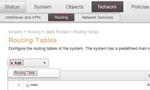 Пройдите в Web интерфейсе Network → Routing, затем нажмите на кнопку Add и выберите Routing Table.