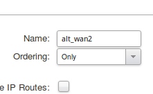 Пройдите в Web интерфейсе Network → Routing → alt_wan2, нажмите кнопку Add и выберите Route IPv4. На вкладке General заполните поля следующим образом:
